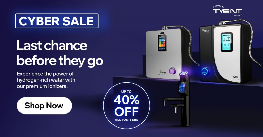 Cyber Monday is Tyent’s largest online savings event of the year, and for one day only, you can unlock exclusive online pricing on the most advanced hydrogen water ionizers available. This is your once-a-year opportunity to save up to 40 percent on a system that upgrades your home’s water at the highest level of purity and performance.