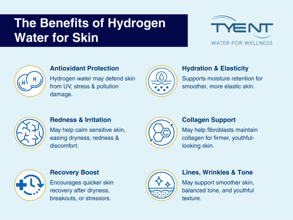 Hydration is one of the foundations of healthy, radiant skin. Beyond basic hydration, hydrogen water has been studied for its potential to reduce fine lines, improve moisture balance, and ease inflammatory skin conditions when used for drinking or even bathing.