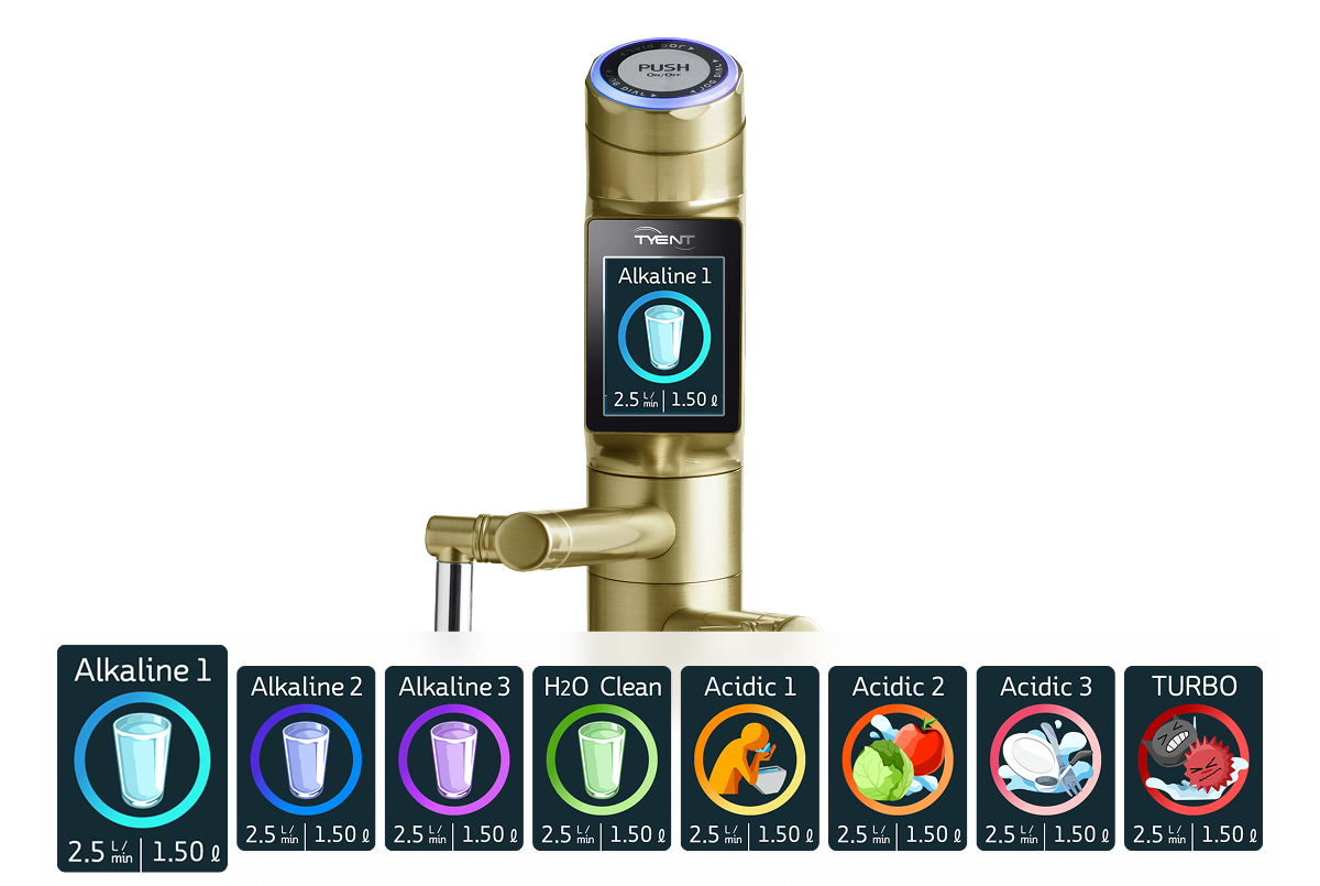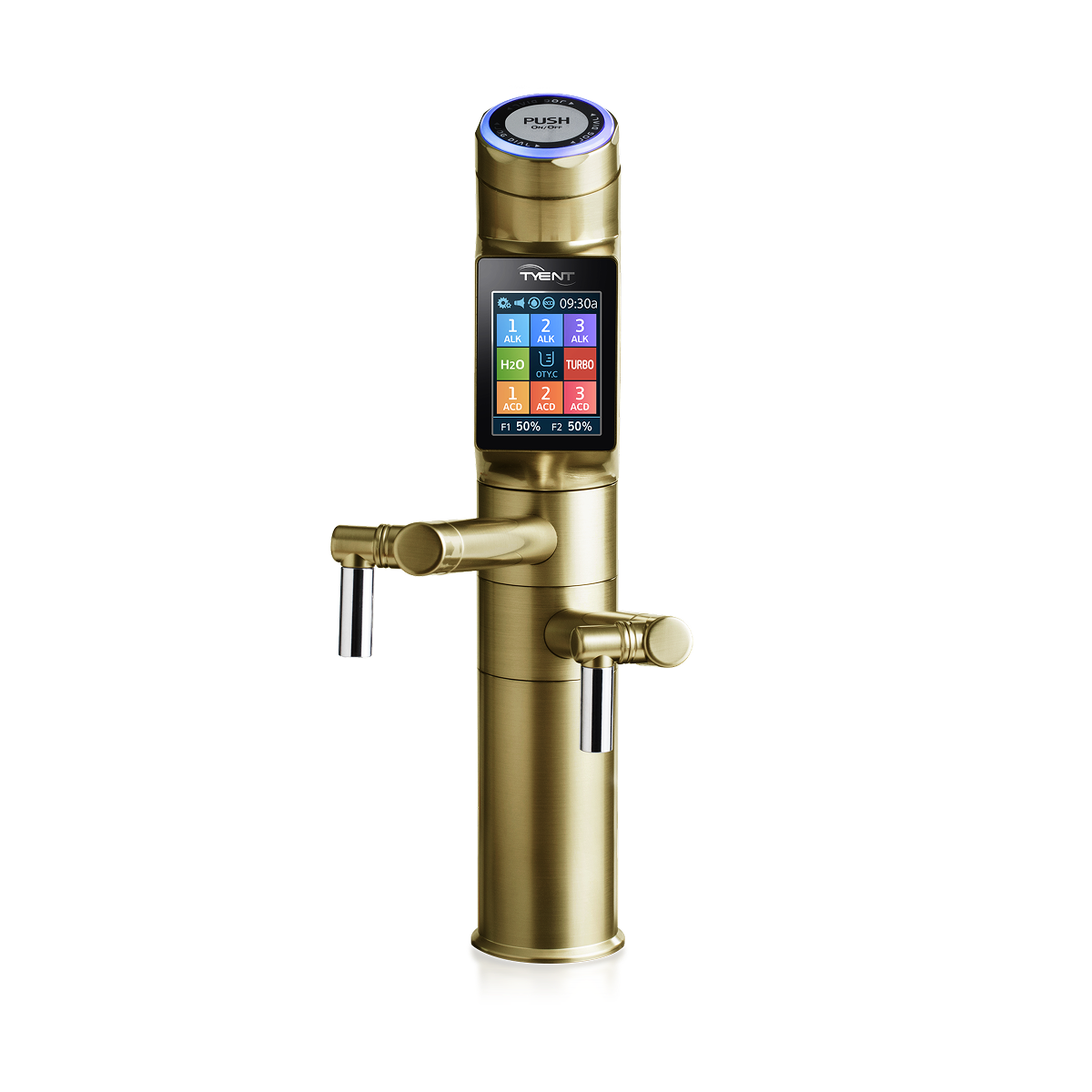 Built seamlessly into your kitchen, the UCE Gold Limited Edition is the ultimate under‑counter water ionizer. Delivering a broad pH range of 1.7–12.5, it provides hydrogen‑rich alkaline water for drinking and cooking, as well as powerful acidic water for natural cleaning. A sleek gold‑finished faucet with a vivid touchscreen keeps the design elegant and modern, while dual .01‑micron Dialipure™ filters remove over 200 contaminants to ensure every glass is as pure as it is refreshing.